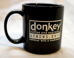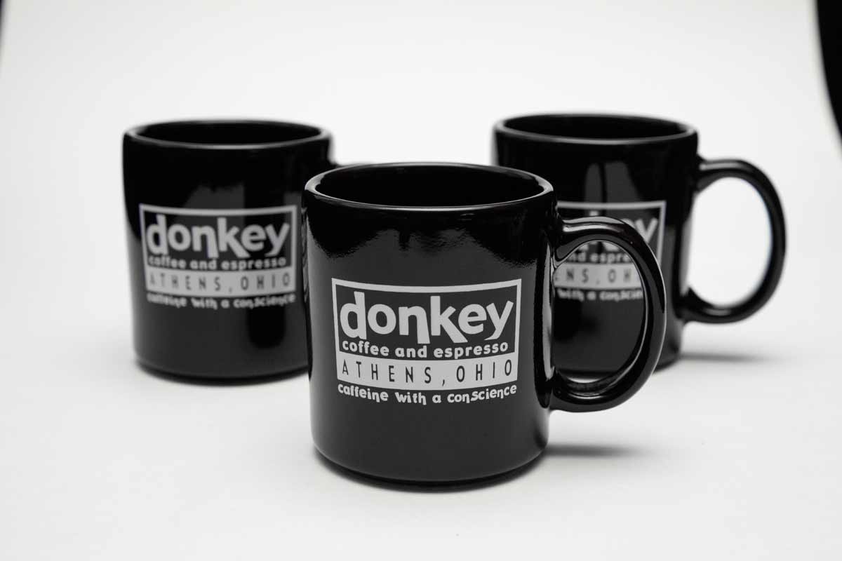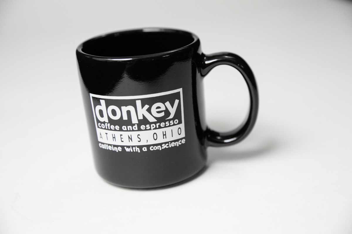 100% ceramic, Donkey-approved, 12 oz. coffee mug, with the Donkey logo on both sides. Color: Black.